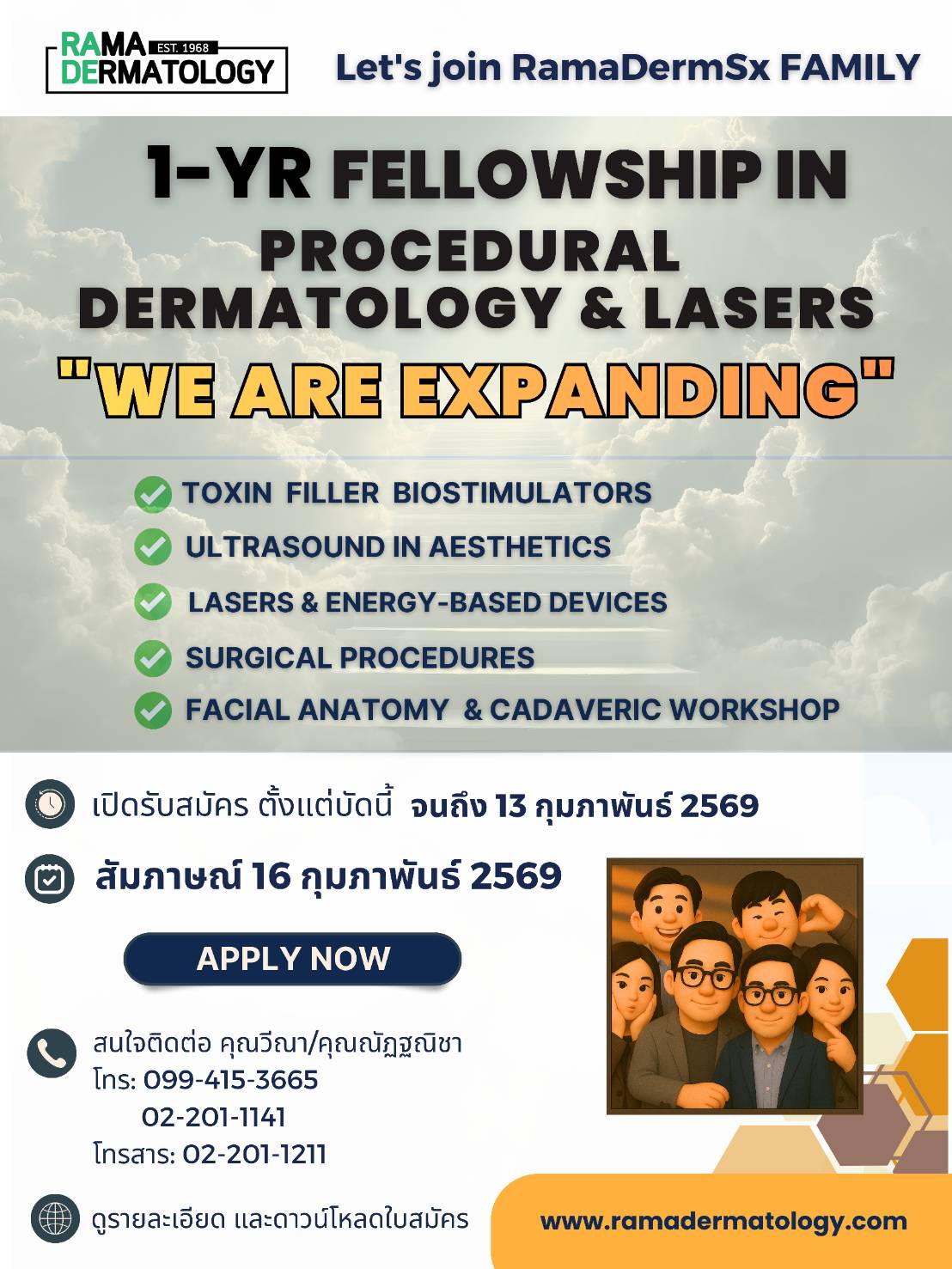New! เปิดรับสมัครแพทย์หลักสูตร Fellowship in Dermatologic Surgery and Laser 2026